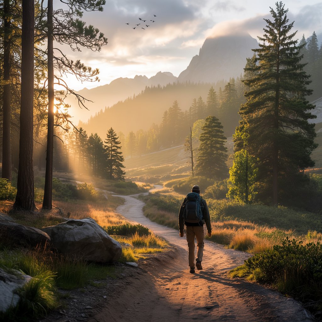 Step Into Adventure: Discover Serene Trails, Towering Pines, and the Beauty of the Mountains Bathed in Golden Light